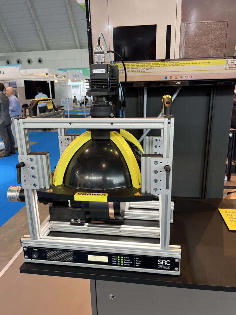 Cognex stellte die Trevista CI Dome Lösung vor. Diese nutzt die VisionPro Software und verbessert Prüfprozesse von Teilen mit glänzenden oder matten Oberflächen. Das integrierte Trevista Bildverarbeitungstool verwendet eine patentierte Shape-from-Shading-Technologie, um schnell topografische Bilder mit hoher Qualität zu erstellen.