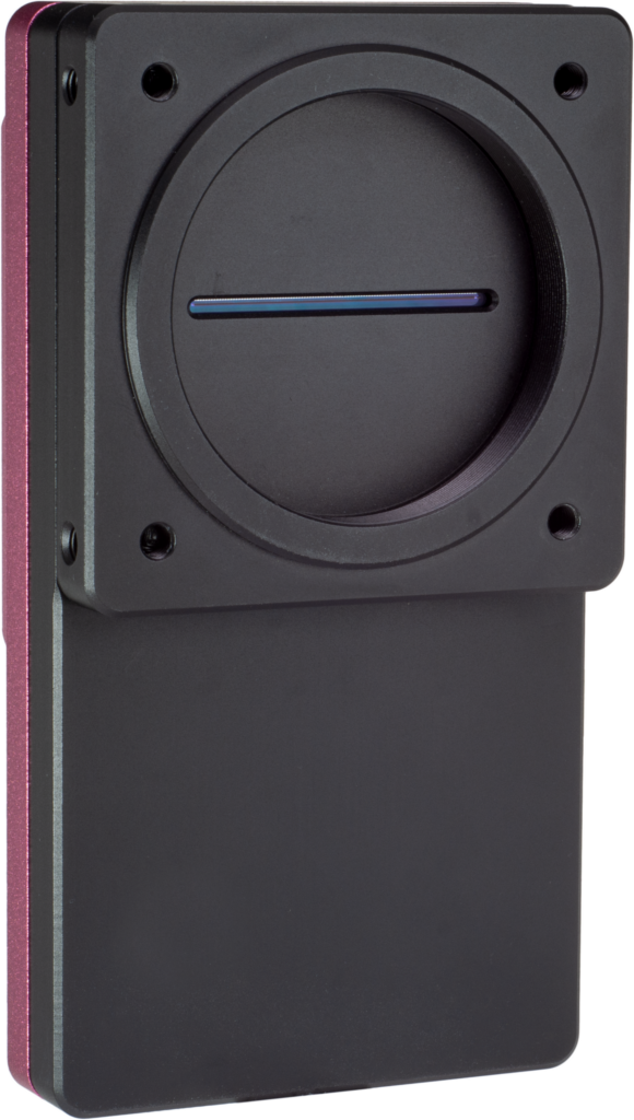 Photonfocus hat sich mit dem GL0816 Sensor von GPixel für einen 8K Zeilensensor entschieden, der sich durch eine hohe Dynamik und geringes Bildrauschen auch bei hohen Frameraten auszeichnet. Die Kamera ist sowohl mit der monochromen Version als auch mit dem Farb-Sensor (RGBW 4-Band) erhältlich. Der Sensor basiert auf einem quadratischen 5µm Global Shutter Pixel und besitzt eine Auflösung von 8.322 Pixel und 16 Zeilen. Diese haben einen 5µm Abstand und können im Zweizeilen-, Vierzeilen- oder Achtzeilenmode mit On-Chip TDI (time delayed integration) ausgelesen werden. Eine maximale Zeilenausleserate von 200kHz für zwei Auslesekanäle wird durch die Sensorarchitektur ermöglicht, womit maximal 400.000 Linien pro Sekunde ausgelesen werden können. Diese Bandbreite kann mit Hilfe eines flexiblen Kanal-Multiplexers auf die auszulesenden Sensorbereiche verteilt werden, so dass z.B. vier Zeilen des Farbsensors mit je 100kHz ausgelesen werden können.