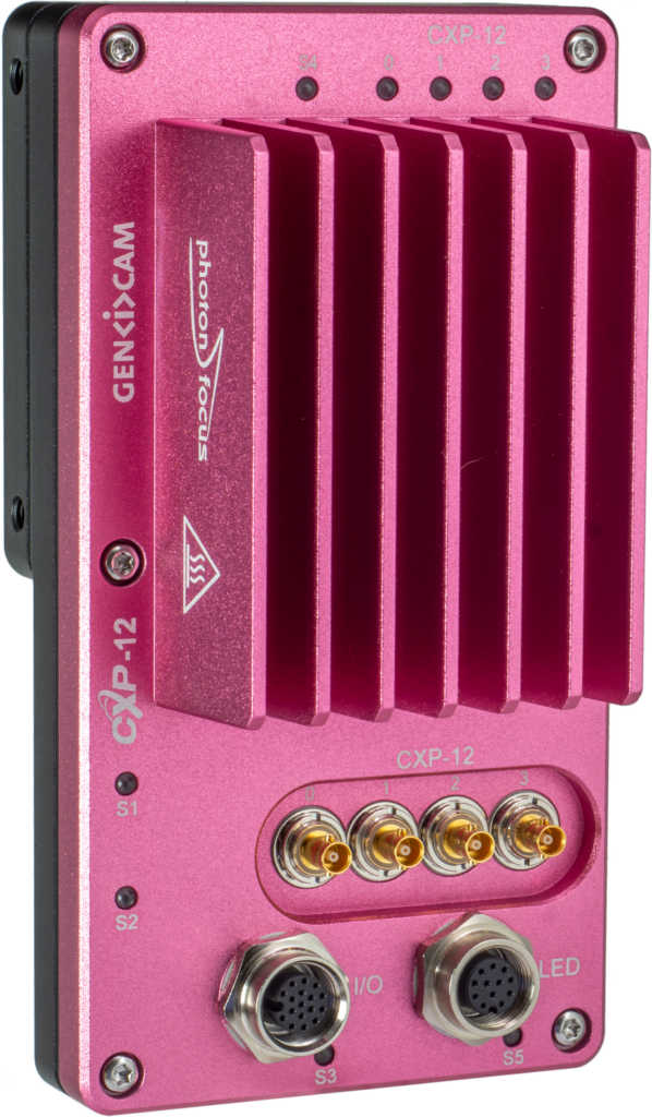 Neben der hohen Flexibilität der Auslesestufe besticht der Sensor auch durch eine zeilenunabhängige Belichtungssteuerung. Damit sind auch bei hohen Zeilenraten unterschiedliche Beleuchtungen in schnellen Abfolgen möglich. Farbe, Durch-/Auflicht und Intensität können im sub-µs Bereich verstellt und so auch bei hohen Geschwindigkeiten von Zeile zu Zeile verändert werden. Die von Photonfocus entwickelte Zeilenkameraplattform ermöglicht dies durch die Kombination von CMOS-Bildsensor, leistungsfähigem FPGA und variantenreichen Systemschnittstellen. Kundenspezifische Lösungen können zeitnah auf bestehender Hardware umgesetzt werden. Die modulare Software-Architektur ermöglicht dabei eine effiziente Anpassung an kundenseitige Systemanforderungen. Insbesondere können bereits im FPGA Ressourcen genutzt werden, um ein Vorverarbeitung der Bilddaten durchzuführen. Als Kern der Kamerahardware wurde ein FPGA gewählt, dass zum einen die nötige Bandbreite zum Bildeinzug und eine flexible Ansteuerung des Bildsensors gewährleistet sowie für die Bilddatenvorverarbeitung in Echtzeit genutzt werden kann und zum anderen über schnelle serielle Transceiver verfügt, die die Implementierung einer CoaXPress (CXP) Schnittstelle mit vier Kanälen mit je 12Gbit (4×4-CXP12) gestattet. In Verbindung mit der Bilddatenvorverarbeitung und der damit einhergehenden Datenreduktion kann alternativ auch eine 10GigE Standardschnittstelle verwendet werden.