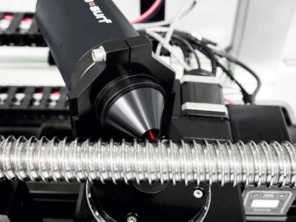 - MarSurf3D OptoRack: Der Sensor wurde speziell für die Prozessüberwachung beim Schleifen und Finishen von Zahnstangen und Kugelumlaufspindeln entwickelt. Durch eine Schwenkachse kann er auf Bahnen rechts und links vom Druckpunkt der Laufbahnen die Rauheit und Welligkeit an beliebigen Stellen der Spindel separat messen.